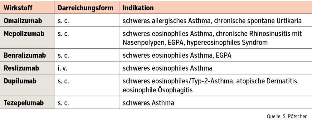 Die Wahl des Biologikums hängt nun von dem zugrunde liegenden Phänotyp ab. In Österreich sind bisher 6 Antikörper (Tab.) zugelassen: