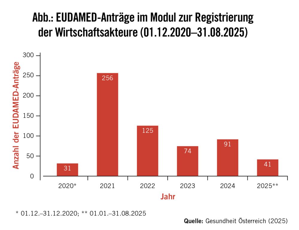 Die verpflichtende Nutzung der ersten EUDAMED-Module – voraussichtlich im zweiten Quartal 2026 – markiert einen wichtigen Meilenstein für die europäische Medizinproduktebranche. Allen österreichischen Wirtschaftsakteuren, die noch nicht in EUDAMED registriert sind, wird empfohlen, die Registrierung zeitnah vorzunehmen und nicht bis zum zweiten Quartal 2026 zu warten. Die Eintragung ist im Modul zur Registrierung von Wirtschaftsakteuren unter folgendem Link möglich: https://webgate.ec.europa.eu/eudamed/landing-page.
