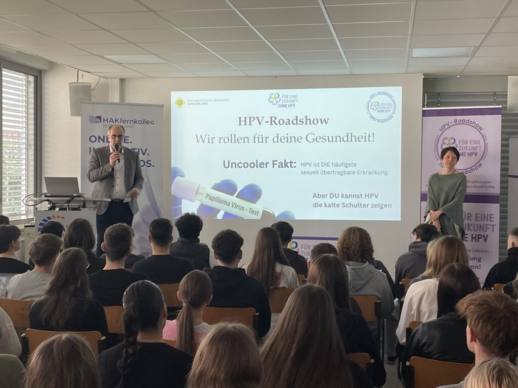 „Mit einer HPV-Roadshow bringen wir Aufklärung und Impfung direkt an höher bildende Schulen im Burgenland“, sagt Dr. Michaela Klein, Fachärztin für Gynäkologie und Geburtshilfe in Bernstein, und Präsidentin der Krebshilfe Burgenland. In einem ersten Termin informieren Ärzt:innen vor Ort über die Bedeutung und Wirksamkeit der Impfung. Danach können sich die Schüler:innen direkt anmelden und werden in einem zweiten Termin an der Schule geimpft. Das Projekt startete im März 2025 – bis Juni wurden bereits 15 Schulen erreicht und rund 360 Jugendliche erhielten ihre erste Impfung. Zusätzlich wird die HPV-Impfung auch bei öffentlichen Veranstaltungen zugänglich gemacht, um noch mehr junge Menschen zu erreichen.