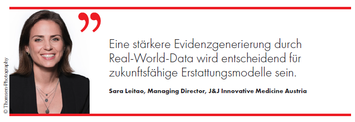Und last but not least: In Sachen „Big Data“ muss Österreich besser werden, meint Leitao: „Die Digitalisierung und die Nutzbarkeit vorhandener Daten hinken anderen europäischen Märkten hinterher.“ Dabei würde eine verbesserte Nutzung dieser Daten viele ­Vorteile bringen: Beispielsweise wäre eine stärkere Evidenzgenerierung durch Real-World-Data ein entscheidender Faktor für zukunftsfähige Erstattungsmodelle, und auch Therapiefortschritte könnten durch die Nutzung von Big Data vorangetrieben werden, erklärt Leitao. Hier arbeitet J&J Innovative Medicine Austria eng mit der Gesundheitspolitik und -wirtschaft zusammen, um neue Wege zu entwickeln. Als Beispiel nennt sie das gemeinsam mit der Fachärzteschaft entwickelte Car-T-Zell-Netzwerk, „das die Behandlung des Multiplen Myeloms revolutioniert und als Vorbild für andere Erkrankungen dienen kann“.