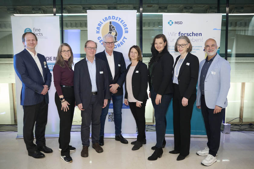 v.l.: Assoc. Prof. Priv.-Doz. Dr. Markus Zeitlinger (MedUni Wien), Dipl. rer. nat. Nicole Schlautmann, MBA (MSD Österreich), DI Dr. Martin Renhardt (BMASGPK), Univ.-Prof. Dr. Bernhard Schwarz (Karl Landsteiner Gesellschaft), Dr.in Hemma Bauer (BMFWF), Hannah Gsell, MSc. (Survivors Austria), Dipl.-Ing.in Dr.in Michaela Fritz (MedUni Wien), Prim. Priv.-Doz. Dr. Arschang Valipour (Klinik Floridsdorf/Karl Landsteiner Institut); © FINE FACTS/APA-Fotoservice/Hörmandinger