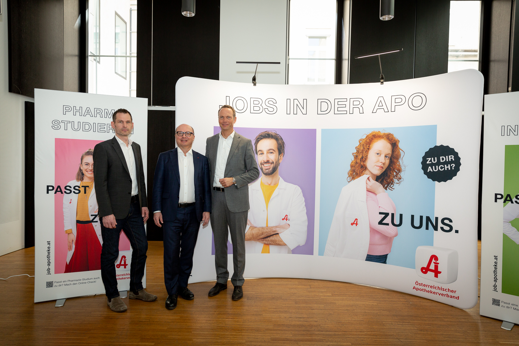 • v.l. Ralph Luger, Thomas W. Veitschegger, Alexander Hartl © Apothekerverband In Österreichs Apotheken gibt es so viele offene Stellen wie noch nie. Der Apothekerverband startet nun eine österreichweite Personalkampagne, um Nachwuchs zu rekrutieren.