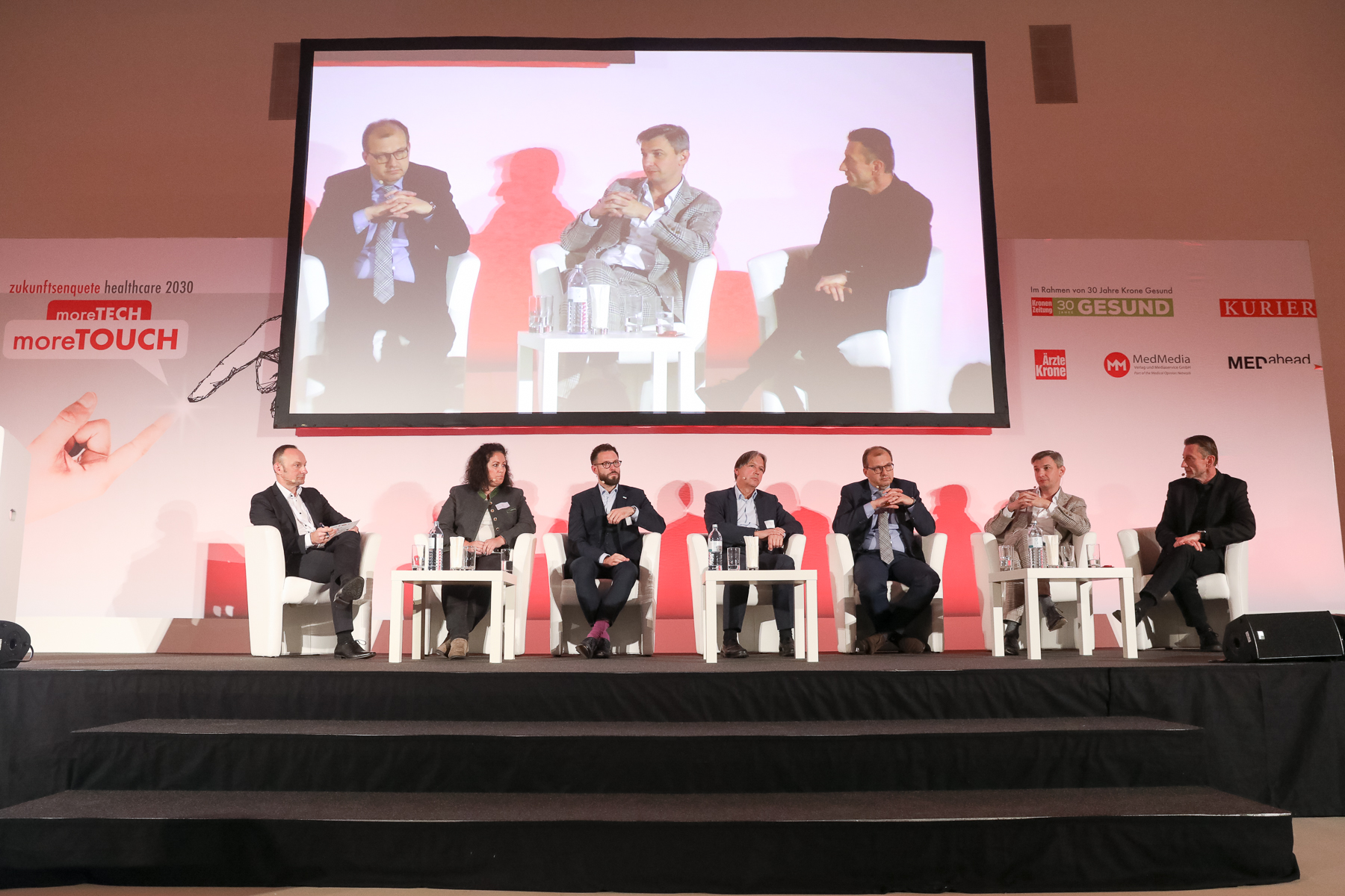 Anlass für die Enquete, an der zahlreiche führende Vertreter des österreichischen Gesundheitswesens in der Aula der Wissenschaften teilnahmen, war unter anderem die 30-Jahres-Fahrer der „Krone Gesund“ und der 20-Jahres-Feier von Publikationen wie der „Ärzte Krone“ „Universum Innere Medizin“. Experten diskutierten unter dem Titel „more Tech – more Touch“ wie es gelingen kann, den Fortschritt der Medizin so einzusetzen, dass der einzelne Patient, der einzelne Mensch, sich dabei wohler, oder sogar glücklicher fühlt. Und wie es gelingen kann, dass die Maschinen für den Menschen und nicht die Menschen für die Maschinen da sind.